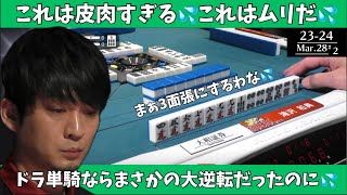 滝沢和典 2024.07.23 sankiti 【Mリ ーグ:滝沢和典】これは皮肉すぎる(汗)これはムリだ(汗)ドラ単騎ならまさかの大逆転だったのに(汗) ツイート シェア はてブ Google+ Pocket フルでご視聴されたい方は、無料視聴(※)ができるU-NEXTがおすすめ! ツイート シェア はてブ Google+ Pocket feedly コメントを残す コメントをキャンセル メールアドレスが公開されることはありません。コメント 名前 メール サイト 次回のコメントで使用するためブラウザーに自分の名前、メールアドレス、サイトを保存する。